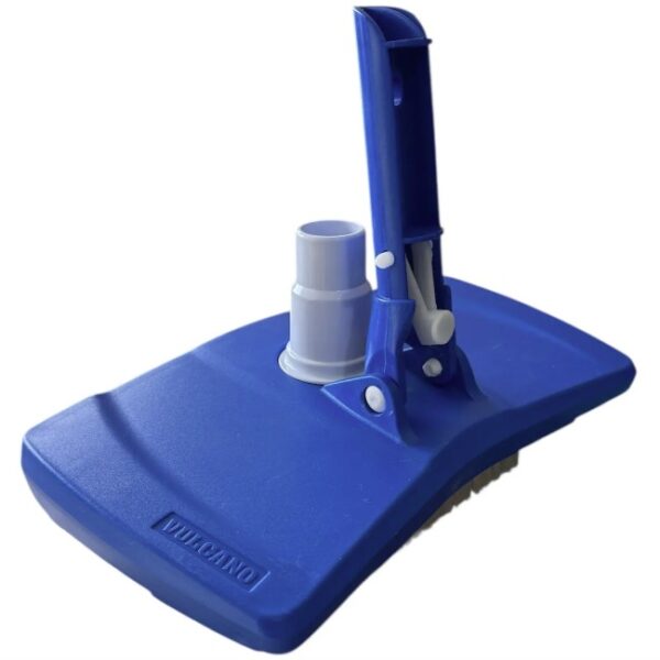 Limpiafondos medialuna liviano Vulcano. Dispositivo para aspirar suciedad y residuos depositados en el fondo de la piscina. Para utilizarlo, se debe conectar la manguera flotante al acople de aspiración y un mango fijo o telescópico.