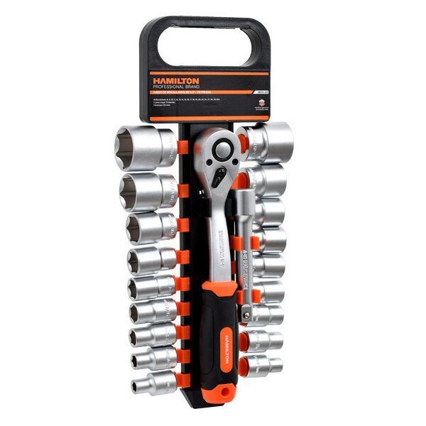 El Juego de Bocallaves Hamilton JB20-20 combina robustez y funcionalidad en un set de 20 piezas con encastre de 1/2”, ideal para trabajos mecánicos, mantenimiento y aplicaciones industriales. Forjado en acero cromo-vanadio y fabricado bajo normas DIN3120, ofrece durabilidad, precisión y un acople seguro en cada tarea.
