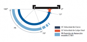 - Mecanismo que permite cerrar bajo control puertas de hasta 950mm de ancho y un peso aproximado de 60kg.