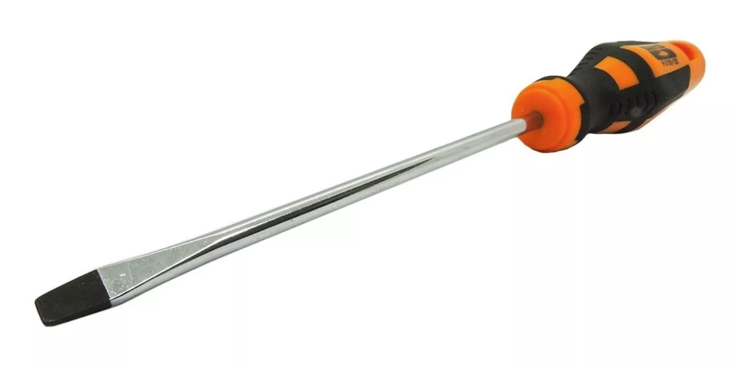 Destornillador para tornillos de cabeza ranurada. Mango bimaterial. Aleación de acero de alto rendimiento . Acabado cromado y completamente templado. Punta con acabado negro para mayor precisión. Número de pieza marcado en la hoja para una identificación más fácil.ISO 2380/DIN 5264.