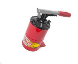 Bomba de engrase muy robusta con cabezal de fundición, palanca con manopla ergonométrica y depósito de chapa laminada.