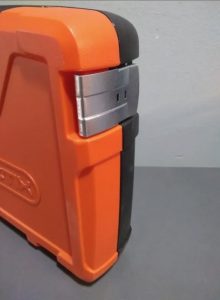– Maleta con dos trabas de seguridad metálicas de gran resistencia.