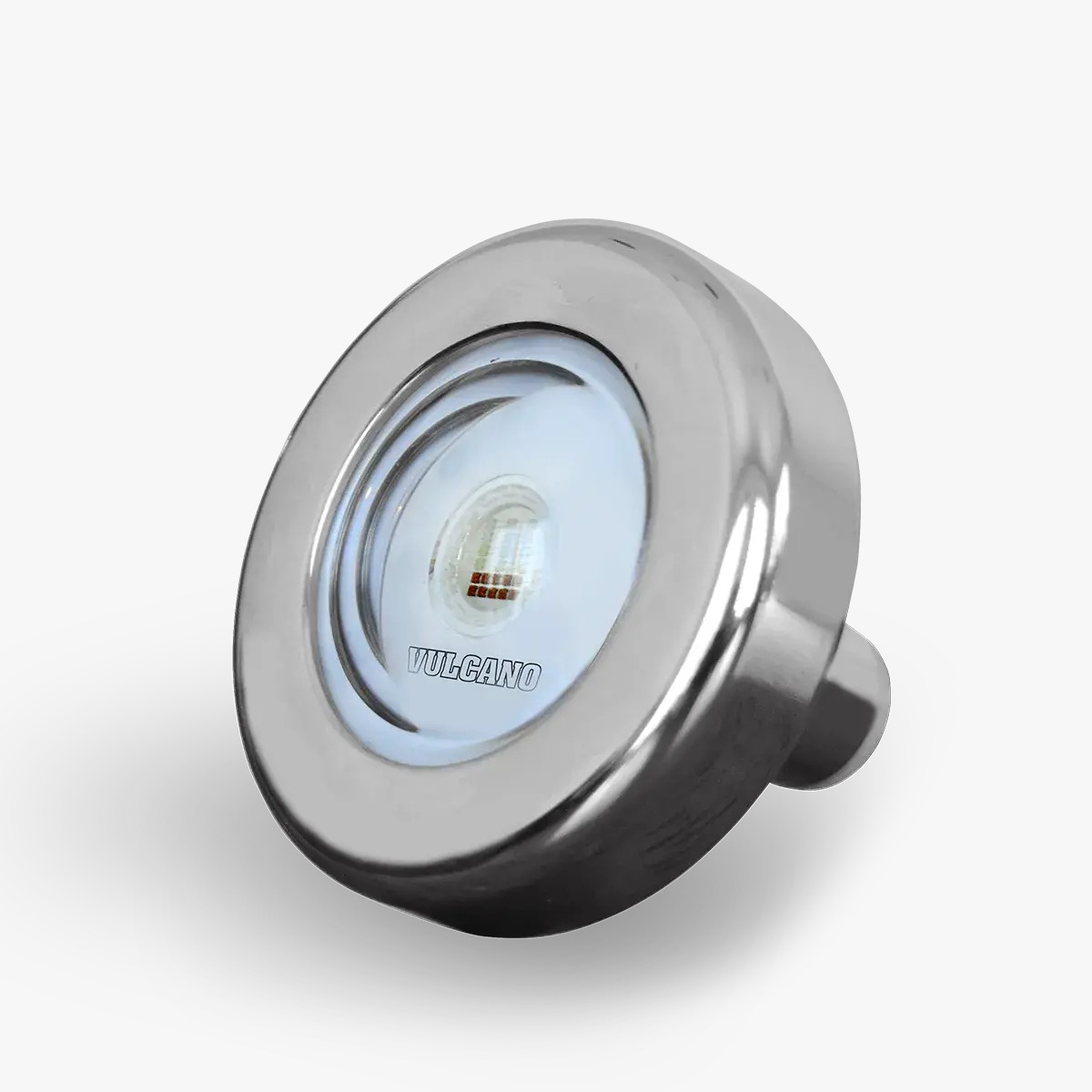 Luminaria subacuática PowerLED Vulcano 9W de luz RGB 12 VCC con cable de 5 m. Con ángulo de apertura de 150°, brinda excelente potencia de iluminación con niveles muy bajos de consumo energético.