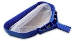 Sacahojas plástico de 370 x 490 mm para mango de ø32 mm. Posee red con bolsa, pensado para colectar impurezas del fondo de la piscina, cuenta con conector reforzado y canto en forma de pala para hacer más sencilla la recolección.